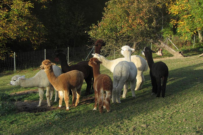 Vor circa 5.000 Jahren wurden Alpakas von den Inkas domestiziert und dienten zur Fleischgewinnung und als Wolllieferanten. Einmal im Jahr ist die Schur der Tiere im April / Mai. Je nach Größe des Tieres können zwischen drei und sechs Kilo Wolle pro Jahr nach der Schur abfallen. Ihre Wolle ist von besonderer Güte und wird auch das Vlies der Götter genannt. Es gibt zwei Alpakasorten: das Huacaya (dieser gehören unsere an), dessen Fell den typischen Crimp aufweist (eine Wellung der Wollfaser) und das Suri (nur etwa 4% der Weltpopulation), die ein glattes Fell haben, welches in langen Locken vom Körper hängt.