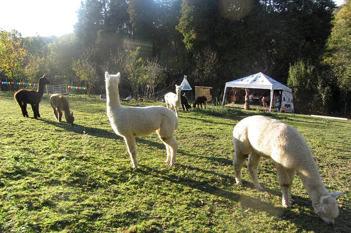 Vor circa 5.000 Jahren wurden Alpakas von den Inkas domestiziert und dienten zur Fleischgewinnung und als Wolllieferanten. Einmal im Jahr ist die Schur der Tiere im April / Mai. Je nach Größe des Tieres können zwischen drei und sechs Kilo Wolle pro Jahr nach der Schur abfallen. Ihre Wolle ist von besonderer Güte und wird auch das Vlies der Götter genannt. Es gibt zwei Alpakasorten: das Huacaya (dieser gehören unsere an), dessen Fell den typischen Crimp aufweist (eine Wellung der Wollfaser) und das Suri (nur etwa 4% der Weltpopulation), die ein glattes Fell haben, welches in langen Locken vom Körper hängt.